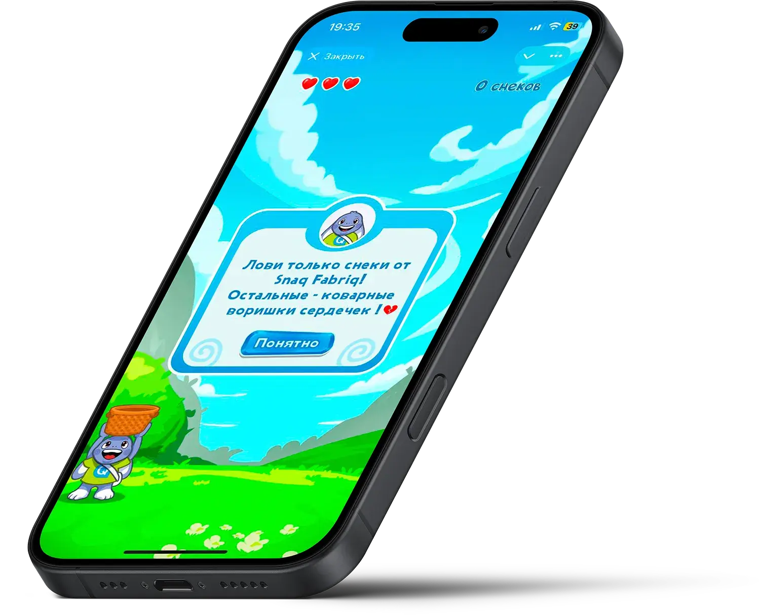 Мини-игра где пользователь управляет героем, который собирает полезные снеки и избегает фастфуда